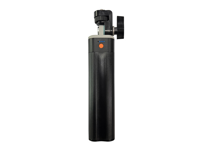 7. This is a 91.76Wh portable power supply with a square cylindrical design for better grip. It features one Type-C port for both input and output, with a maximum input power of 60W and a maximum output power of 100W. It also has one D-TAP port supporting up to 120W output. Equipped with one fast charging indicator and four battery level indicators, it clearly displays charging and discharging status. The top of the product has an adjustable 1/4 screw mount for securing devices with 1/4 screw holes. The bottom is fitted with a 1/4 screw hole, allowing the unit to be mounted on tripods, gimbals and other equipment with 1/4 screws.